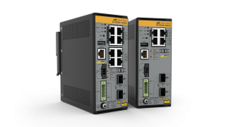 IE220 Industrial Ethernet Layer 2+ switches with 8 x 10/100/1000T PoE++ copper ports and 2 x 1G/10G SFP+ uplinks.
