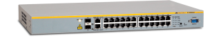 24-port stackable 10/100TX PoE Layer 2 switch with 2 active SFP bays (unpopulated) and 2 standby 10...
