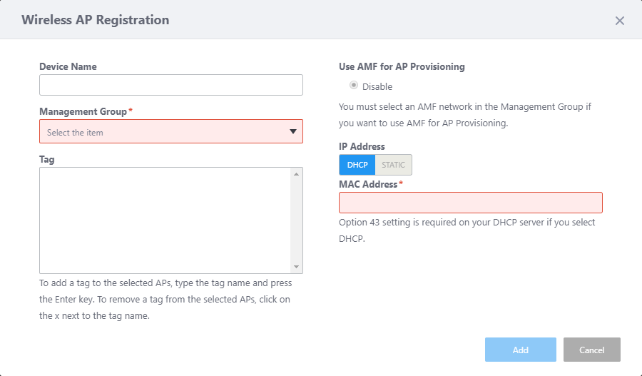 - Specify the Management Group that you want the AP to belong to.