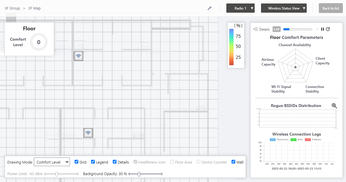 Wireless Status View for the "3F Map" will appear.