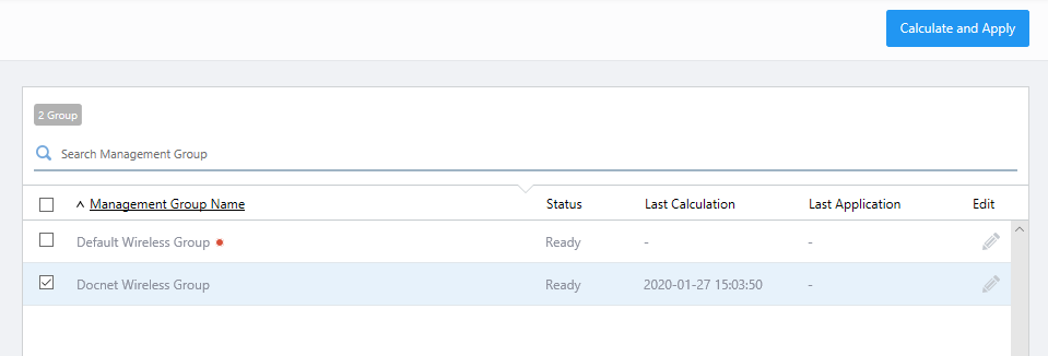 - On the "AWC Settings" page, check the Management Group that you want AWC to recalculate and apply optimal channels and transmit powers.