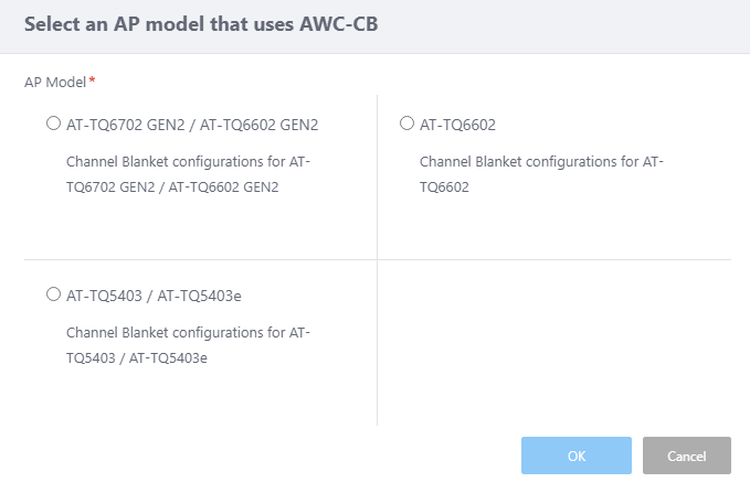- The "Select an AP model that uses AWC-CB" dialog box will appear.
