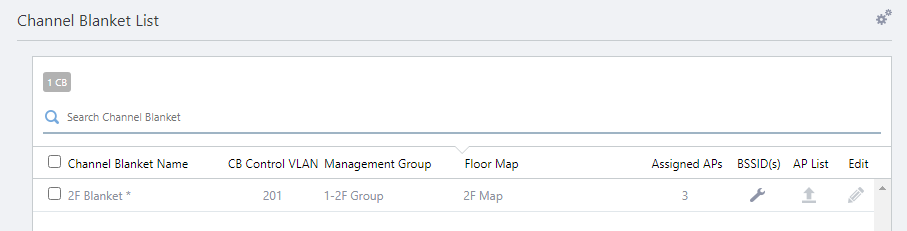 In the title, the channel blanket name follows "AP List", in brackets. In this case, the title is "AP List (Channel Blanket Name: 1F Blanket)".