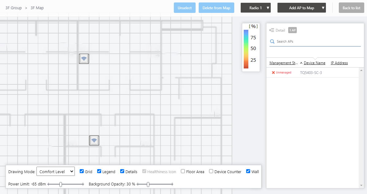 The "Add AP to Map" view will appear. A list of APs in the same Management Group as the map are shown on the right side of the screen.