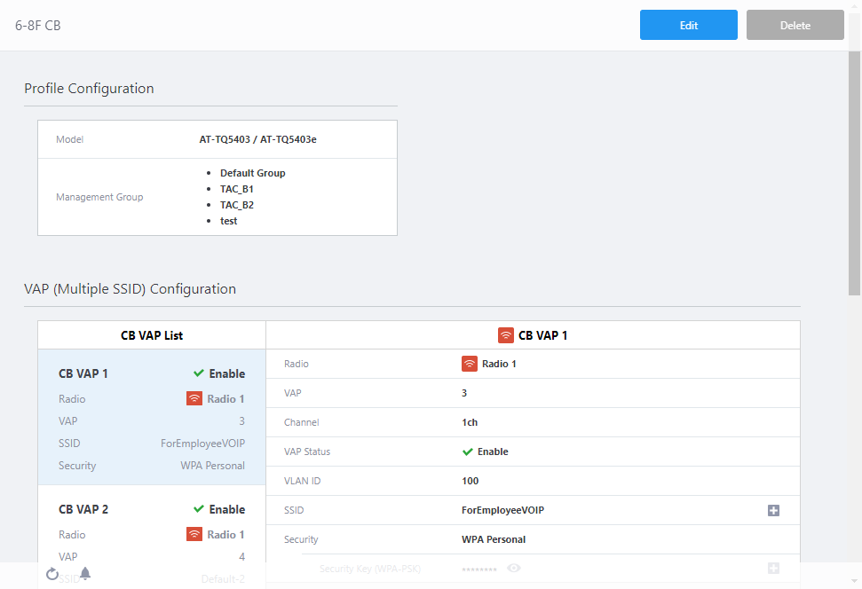 | Assigned APs | Shows the number of APs of which the CB Profile is assigned to. This number includes APs that are not operational (e.g. temporarily powered off). |