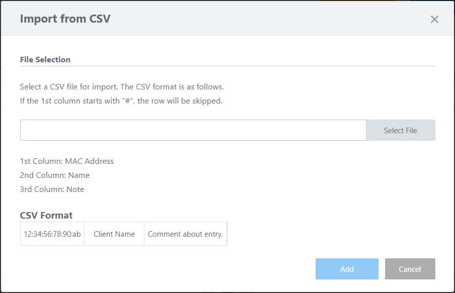 With this list, you can define display names and notes for specific clients to help with identification in the Wireless Client View.The client names will be used only in the Wireless Client View. The Management Log screen will not be affected.