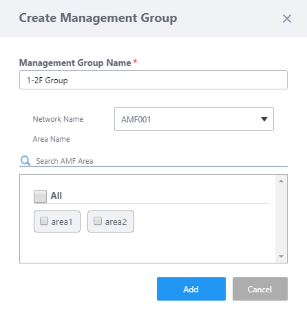 - Once you select an AMF network, a list of AMF Areas in the network will be shown in the "Area Name" field.