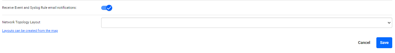 - Set the email notifications about Event and Syslog rules, and the network topology layout.