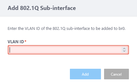 | Add | Create an 802.1Q sub-interface with the entered VLAN ID and add it to the list. |