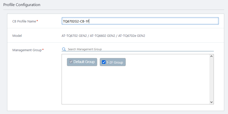 - Enter "TQ6702G2-CB-2F" in "CB Profile Name".