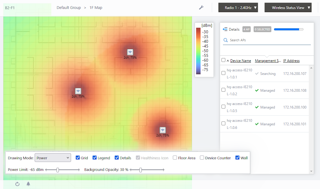 The Wireless Status View of the map will be shown in the Content section.