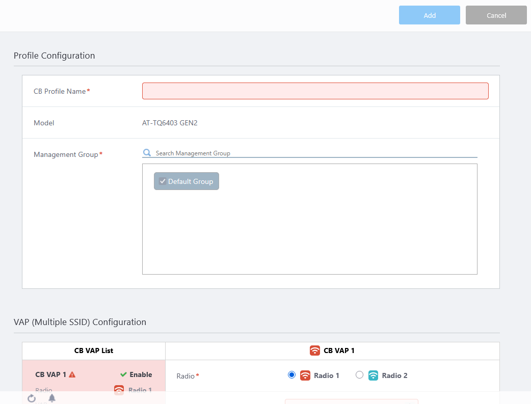 | Management Group | Select a Management Group that you want to apply this CB Profile to. You cannot uncheck "Default Wireless Group" (mandatory)