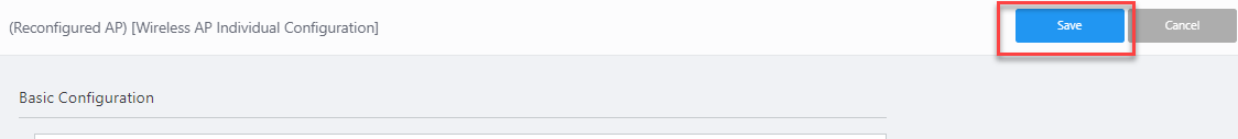 - Click "Save" at the top right of the Wireless AP Individual Configuration screen.
