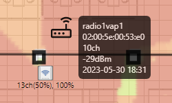 | Wireless Connection Logs | Displays the number of success logs such as associations, failure logs such as disconnections, and information logs such as channel blanket handovers of wireless clients to the APs on the floor map over the past hour. |
