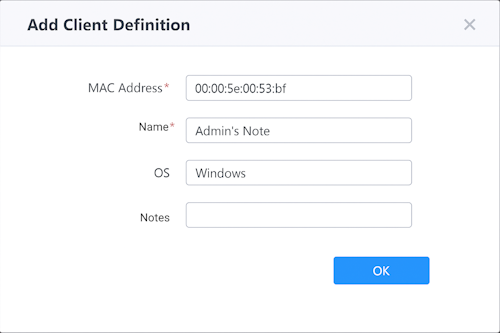 | MAC Address | Enter the MAC address of the client. The MAC address of the client selected in the client list is automatically entered. |