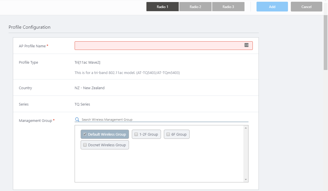 - Select the Management Groups that you want this AP Profile to belong to.