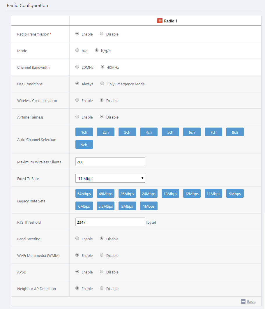 - You can specify the AP's system settings in the "Basic Configuration" section.