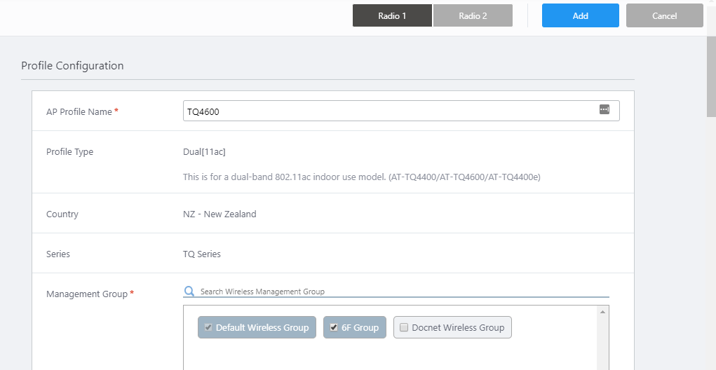 An AP Profile can be used in multiple Management Groups by selecting those groups in this dialog box.