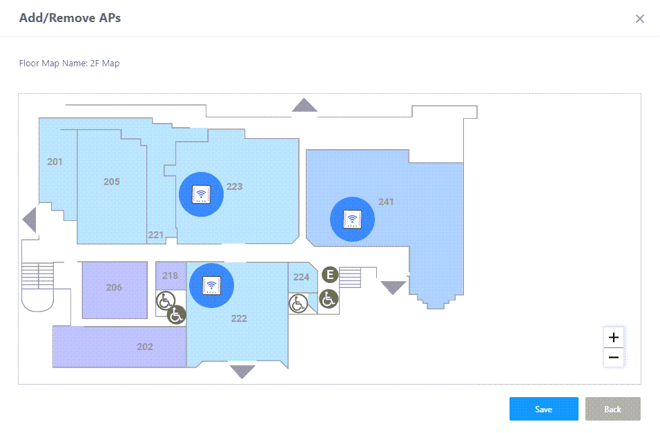 APs placed on the "2F Map" will be displayed as icons on the map.