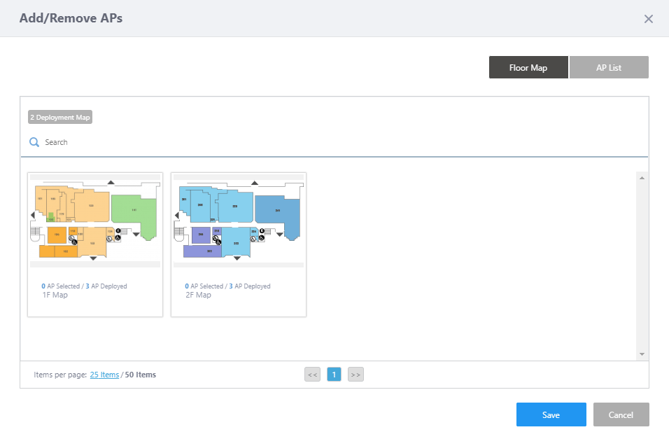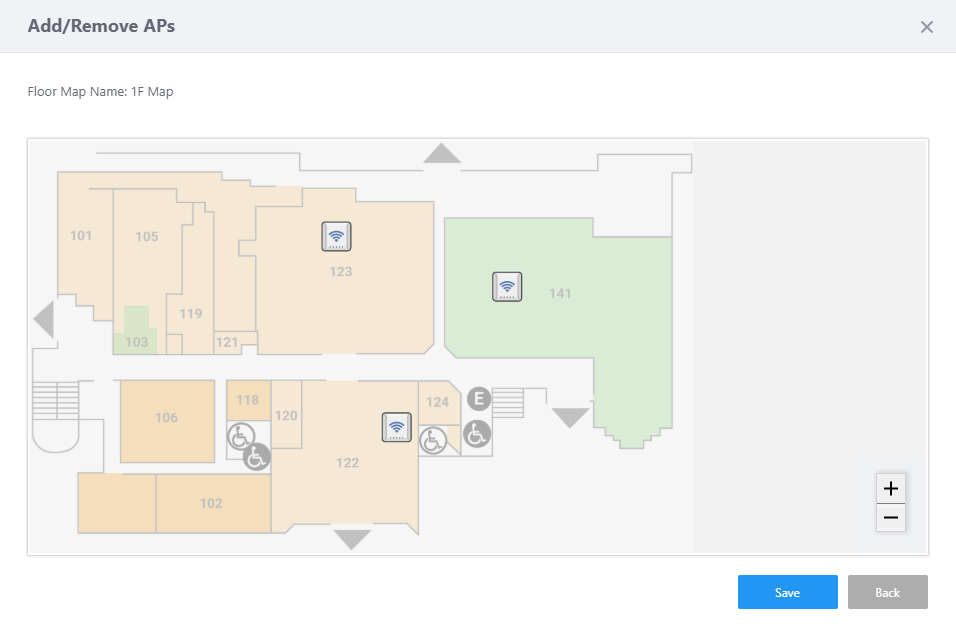 APs placed on the "1F Map" will be displayed as icons on the map.