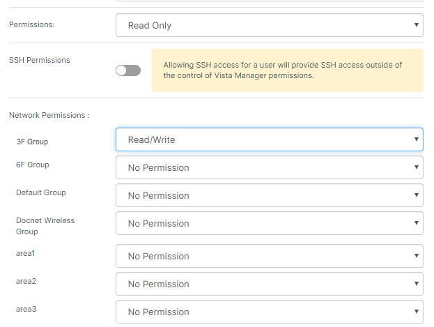 - When the Account Type is "User", you can set the user Read/Write permissions for each Site and Group in Vista Manager EX.