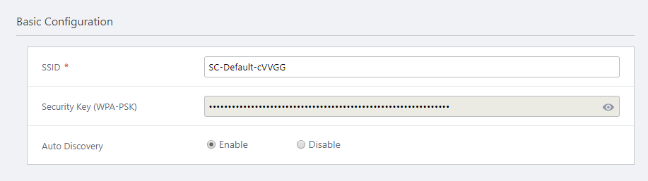 The security key is a pre-shared key used for the SC management SSID. 63 randomly generated alphanumeric characters (mixed case) are automatically set and cannot be changed.