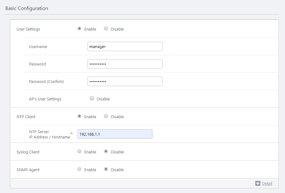 - You can specify the AP's system settings in the "Basic Configuration" section.