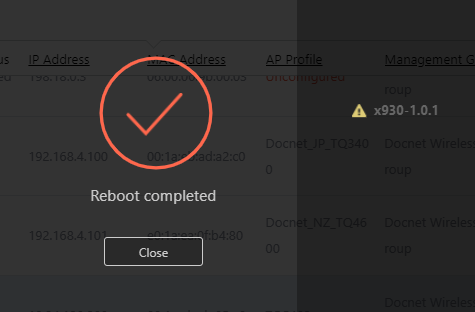 - The reboot process begins. The message "Reboot completed" will appear when it is finished. Click the "Close" button.