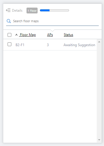 When you have selected a specific floor map in the floor map drop-down menu at the top of the screen, a list of wireless APs will be displayed.