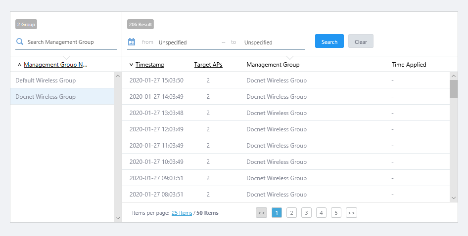 Groups in the list can be filtered by entering partial name in the "Search Management Group" box. The search field lets you enter a partial string to match. The screen displays entries with that string in their name. To remove the filter, delete the string from the search field and press enter.