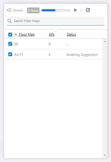 | Search Floor Maps / Search APs | You can enter part of the name to narrow down the floor maps or APs to be listed. |