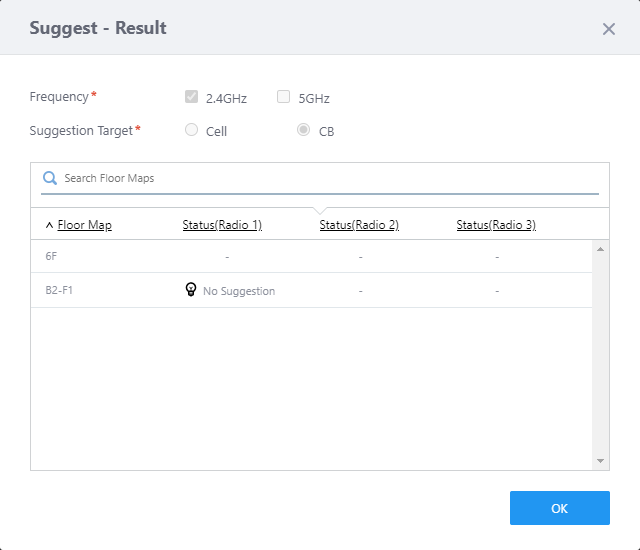 Depending on the selection of the suggestion target, the floor map list or the wireless AP list will be displayed.