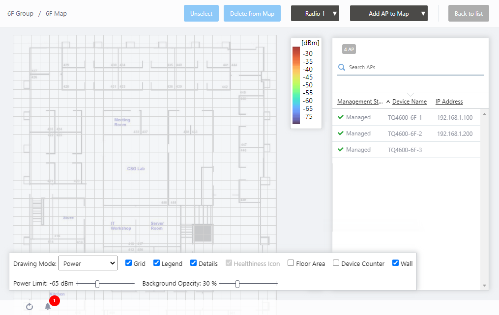 - From the "Management Group" dropdown, select the Management Group "6F Group" that we created earlier in Quick Tour > Configure Multi-channel Wireless Network > Create Management Group.