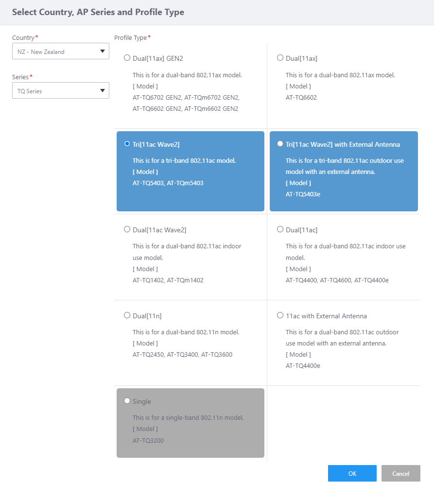 The "Select Country, AP Series and Profile Type" dialog box will appear.