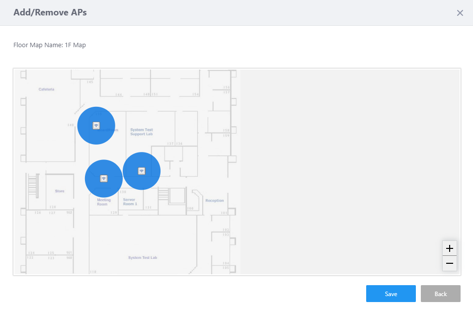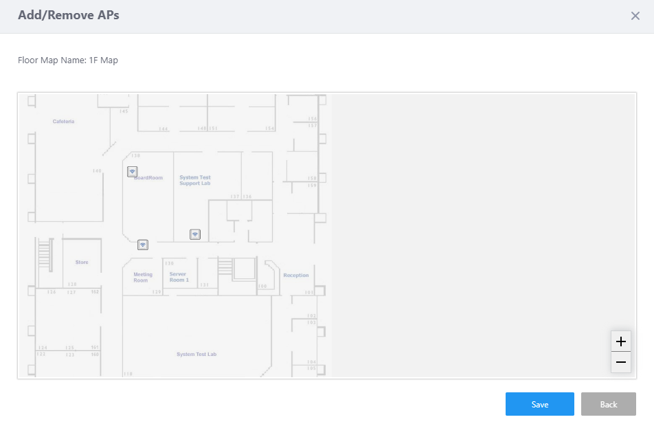 APs placed on the "1F Map" will be displayed as icons on the map.