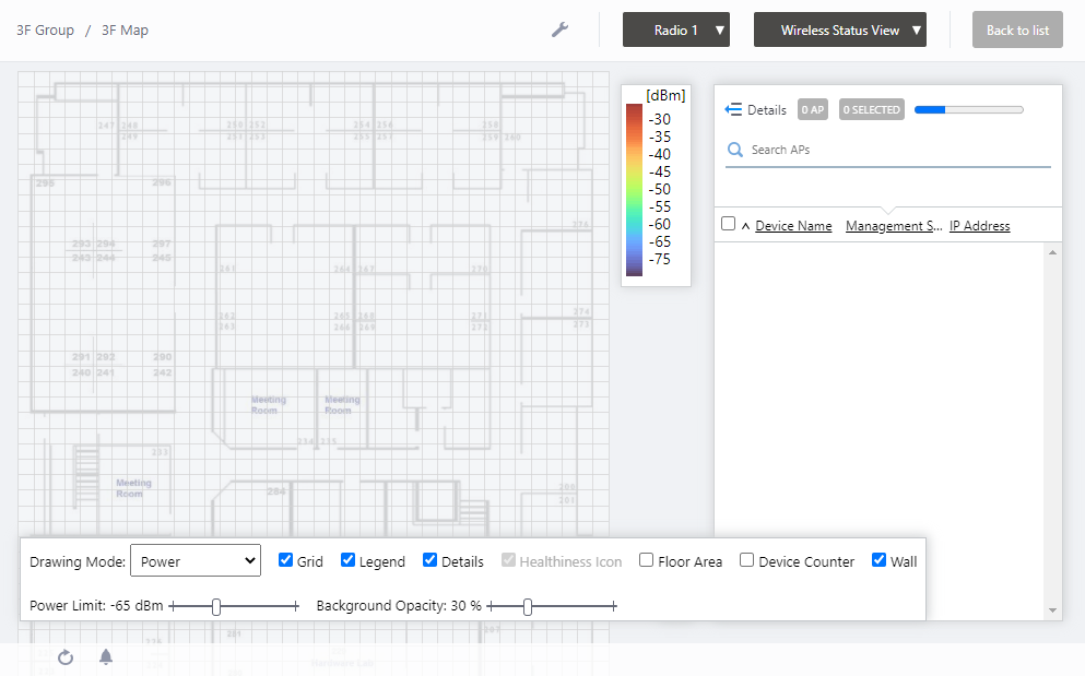 The "Add AP to Map" view will appear. A list of APs in the same Management Group as the map are shown on the right side of the screen.