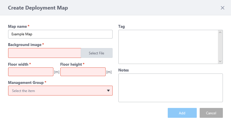Item Name Description Map Name Enter a name for the Floor Map. Max 100 characters. Background image