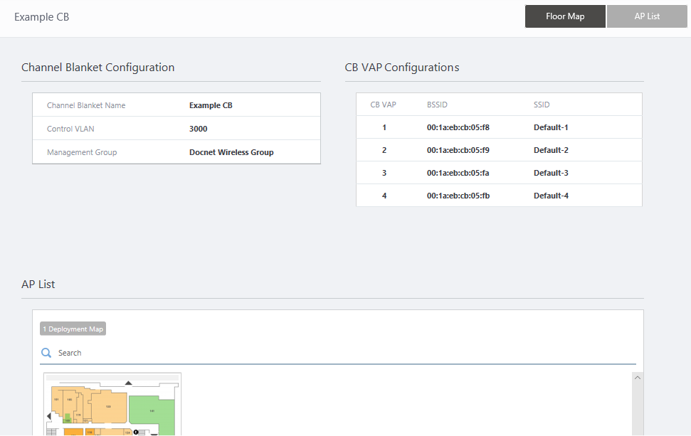 | "Floor Map" button | Shows the APs in the channel blanket in floor map format. |