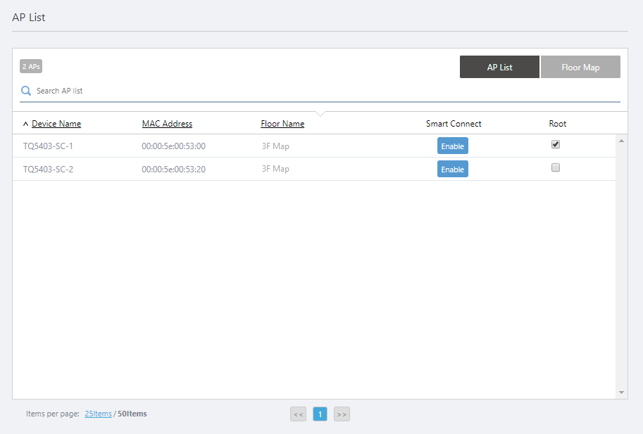 If there is an AP that does not use Smart Connect in the AP List, click "Enable" (blue) of "Smart Connect" to switch it to "Disable" (gray).