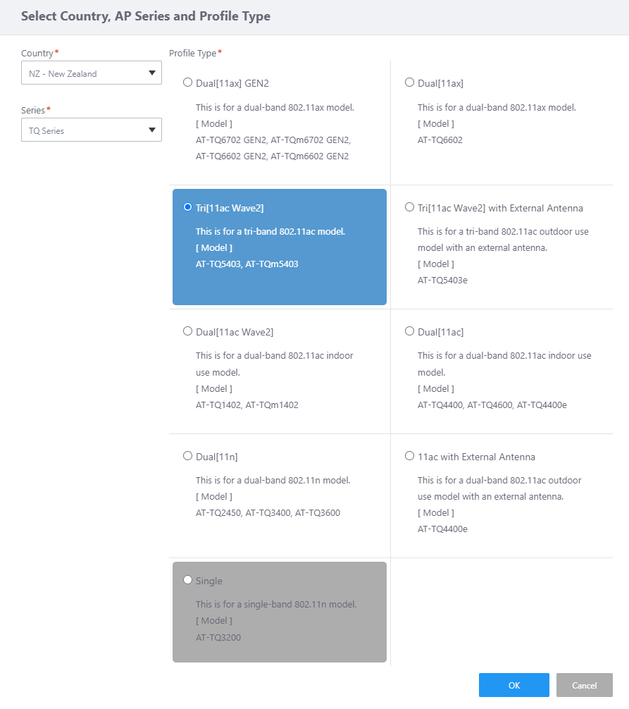 The "Select Country, AP Series and Profile Type" dialog box will appear.
