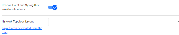 - Set the email notifications about Event and Syslog rules, and the network topology layout.