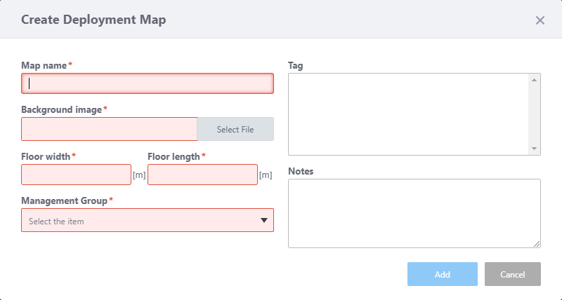 - Specify the floor map image by using the "Select File" button in the "Background image" section.