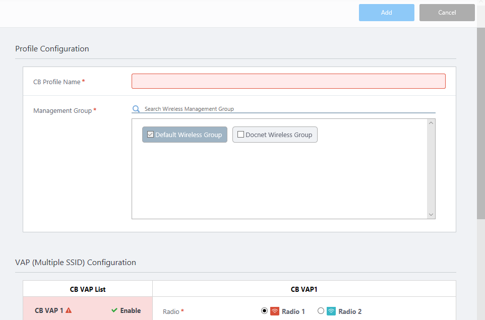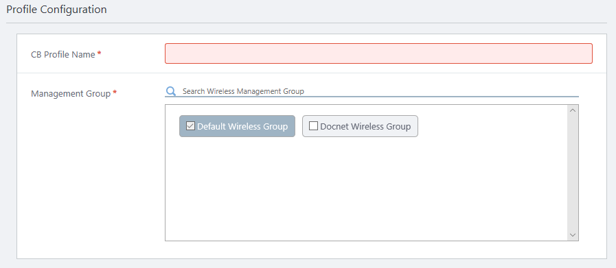 | Management Group | Select a Management Group that you want to apply this CB Profile to. You cannot uncheck "Default Wireless Group" (mandatory)