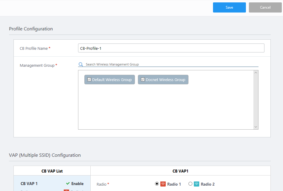 Only VAP (Multiple SSID) Configuration in a CB Profile is applied to individual APs.Therefore, if you change a CB Profile for multiple channel blankets but the VAP configuration does not change, you only have to apply the changes to the specific channel blankets that are affected by the changes. You do not have to apply the changes to the other channel blankets.