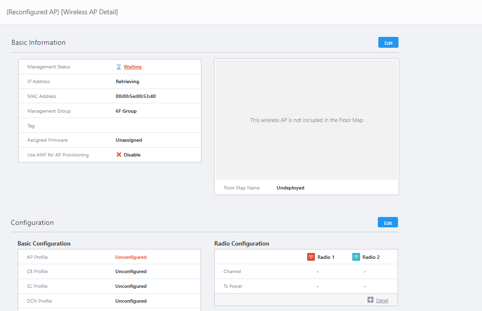 Depending on the timing of the detection of AP and the application of configuration, "Management Failed" may appear in the management status.