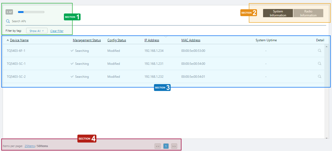 | Device Name | Shows the name of the AP. If the AP was added from the Guest Device List, the guest device name is displayed. |