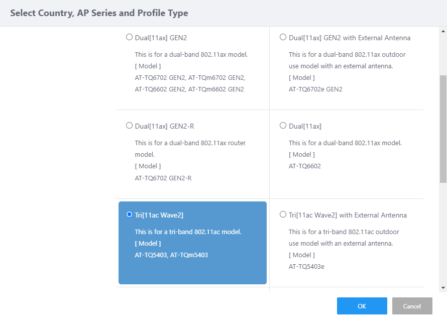 The "Select Country, AP Series and Profile Type" dialog box will appear.