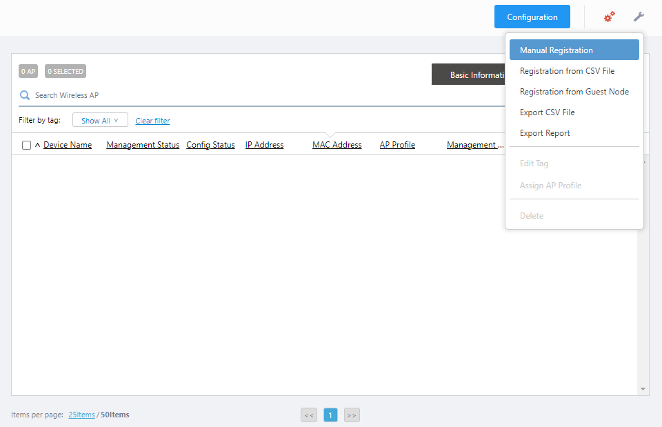Register the wireless AP router under the control of the AWC Plug-in.When registering the wireless router to the AWC plug-in, only IP manual configuration is supported. Automatic configuration via DHCP is not supported.