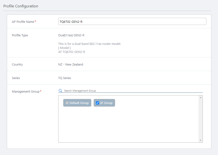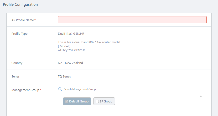 Enter "TQ6702 GEN2-R" in "AP Profile Name".
