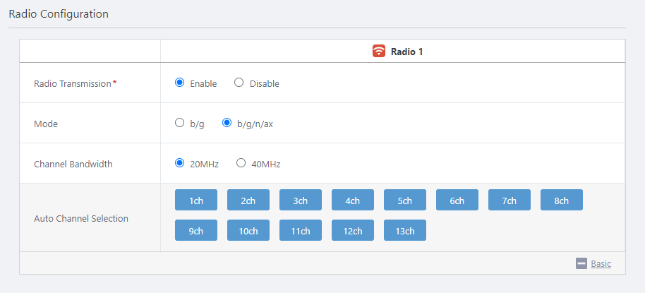 - You can specify configuration parameters for radio waves in the "Radio Configuration" section.